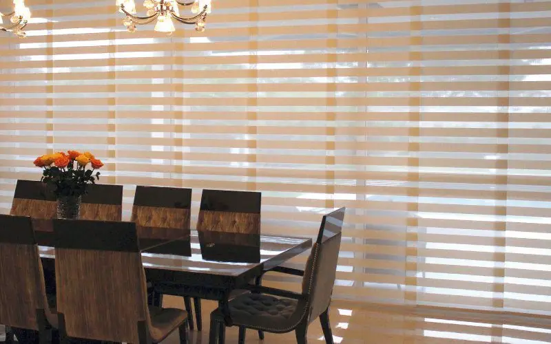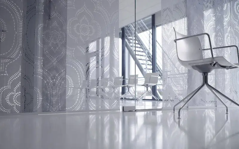 3. Te ofrecemos diferentes tipos de cenefas para cubrir el riel del panel japonés: Cenefas de aluminio a la vista o cenefas forradas en tela.