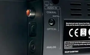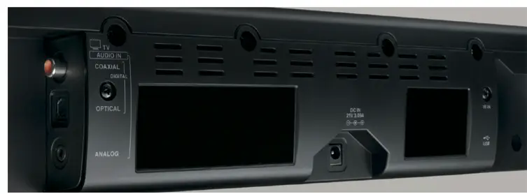 El audio de su televisor (y cualquier reproductor multimedia conectado a él) se pasa al DLB-40.6 a través de un solo cable de audio coaxial u óptico digital. Puede conectar otros dispositivos (como teléfonos inteligentes, tabletas y reproductores de MP3) a través de una entrada de audio analógica de 1/8 “(3,5 mm). Un puerto USB reproducirá archivos MP3 almacenados en teléfonos inteligentes y unidades de memoria flash compatibles con USB, y puede usar el control remoto del sistema para seleccionar álbumes, listas de reproducción y pistas.