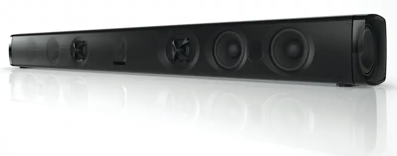 El diseño de bajo perfil de la Barra de Sonido DLB 40.6 lo hace ideal para exhibirlo en una unidad de entretenimiento o soporte de TV.